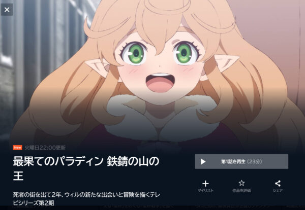 先に結論をお伝えすると、2023年10月7日(土)から放送のアニメ「最果てのパラディン 鉄錆の山の王」は、『U-NEXT』の動画配信サイトで1話から最新話(11話)が配信されております。
