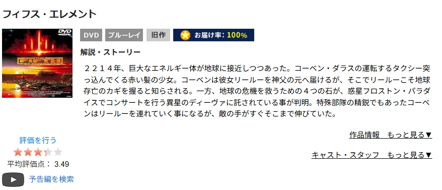 TSUTAYA DISCASで映画「フィフス・エレメント」をDVDレンタルしてフル視聴