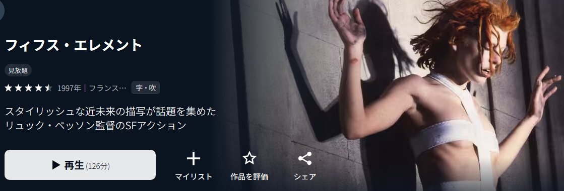 映画「フィフス・エレメント」が配信してる動画配信サービスを調査しました。