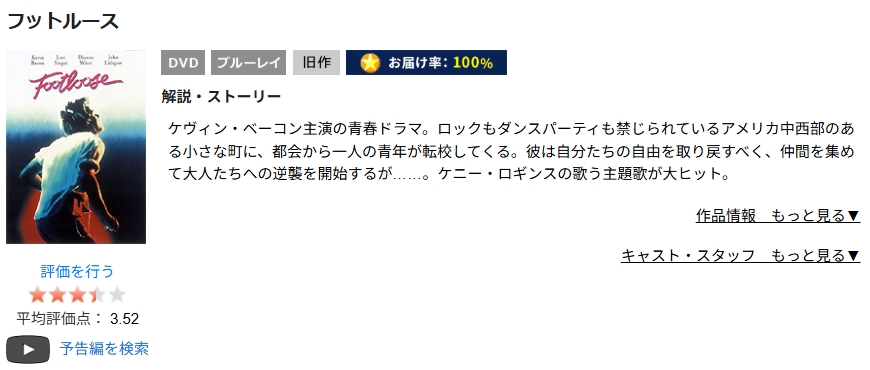 TSUTAYA DISCASで映画「フットルース」をDVDレンタルしてフル視聴