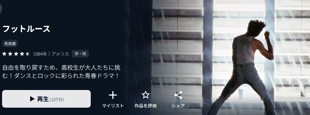 また、映画「フットルース」の関連作品もトライアル中にフル視聴が可能です。