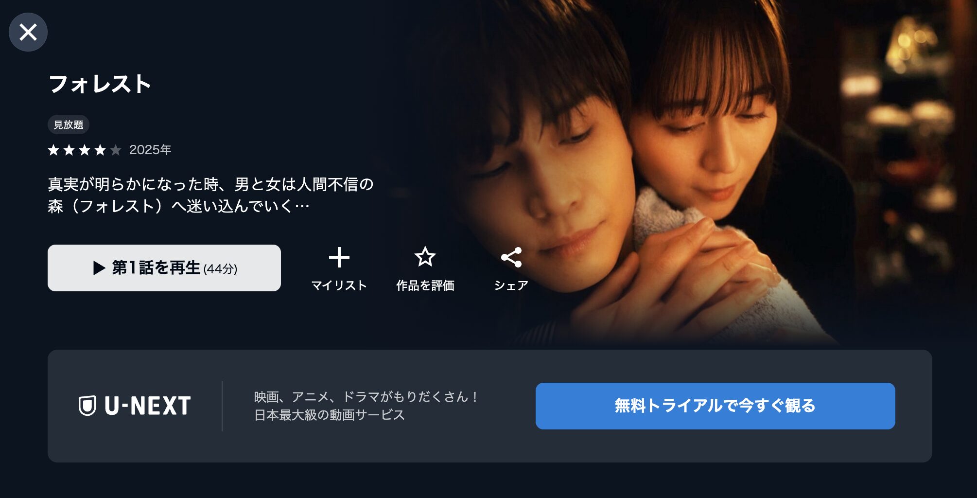 U-NEXTでドラマ「フォレスト」の動画を全話無料視聴