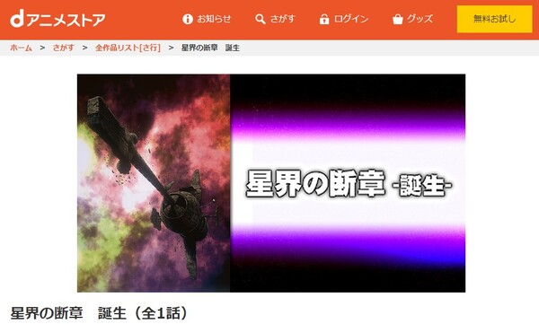 - 「星界の断章 -誕生-」の関連動画も無料で視聴できる。