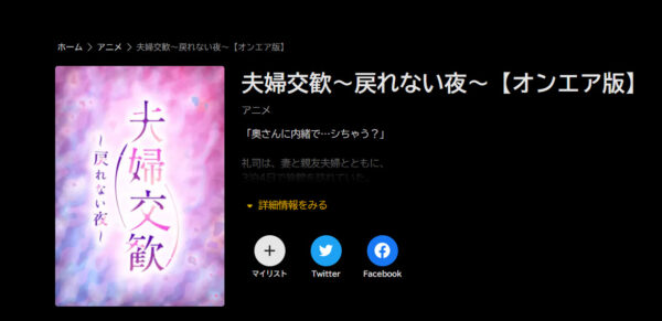 アニメ『夫婦交歓~戻れない夜~』の無料動画を配信しているサイト