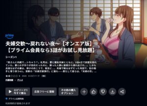 Amazonプライムビデオでアニメ「夫婦交歓~戻れない夜~」を視聴