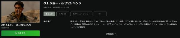 映画「G.I.ジョー バック2リベンジ」が配信してる無料動画を調査しました。