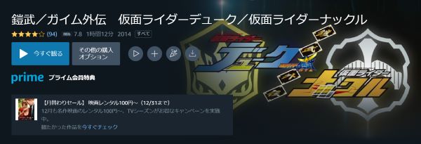 Amazonプライムビデオで、映画「鎧武外伝 仮面ライダーデューク/仮面ライダーナックル」をフルで視聴しながら他の動画も見放題で配信しています。