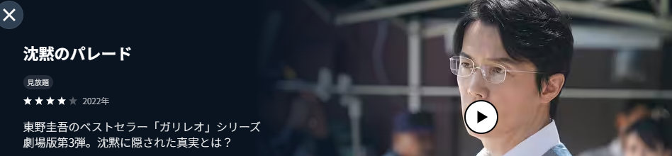 映画「ガリレオ 沈黙のパレード」は旧作で、追加料金なしでフル視聴可能です。