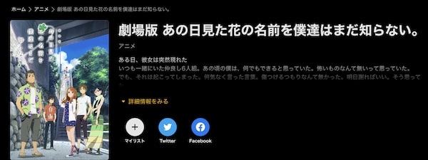 - 映画「劇場版 あの日見た花の名前を僕達はまだ知らない。」がフルで配信中。