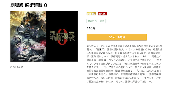 理由は、31日間の無料期間があり、「劇場版 呪術廻戦 0」の映画をフルで配信しているからになります。