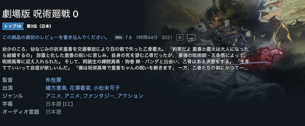 人気の動画配信サイトAmazonプライムでも、アニメ映画「劇場版 呪術廻戦 0」を視聴できるか調査しました。