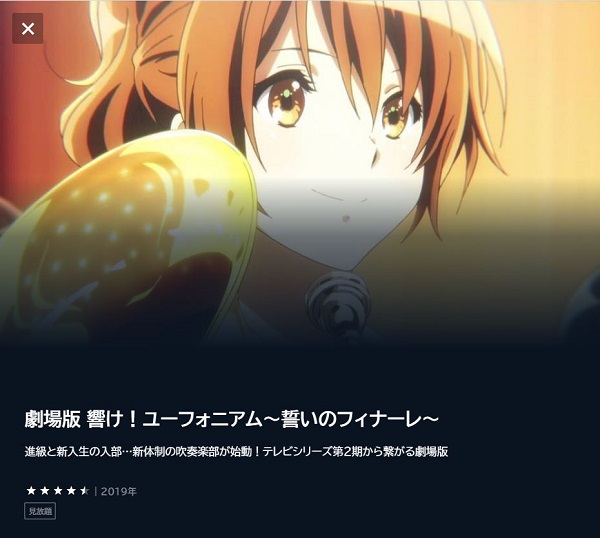 U-NEXTで映画「劇場版 響け!ユーフォニアム〜誓いのフィナーレ〜」の動画を無料トライアルでフル視聴