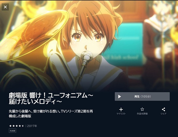 U-NEXTで映画「劇場版 響け!ユーフォニアム〜届けたいメロディ〜」の動画を無料トライアルでフル視聴