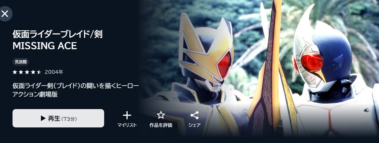 - 映画「劇場版 仮面ライダー剣(ブレイド)/MISSING ACE」がフル視聴可能。