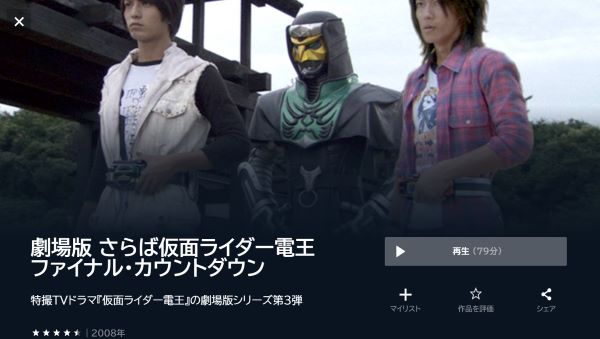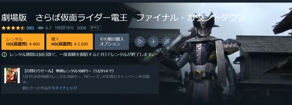 Amazonプライムビデオで映画「劇場版 さらば仮面ライダー電王 ファイナル・カウントダウン」をフルで無料視聴