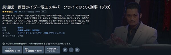 しかし、映画「劇場版 仮面ライダー電王&キバ クライマックス刑事」はレンタル作品のため、300円かかってしまい無料視聴することができません。