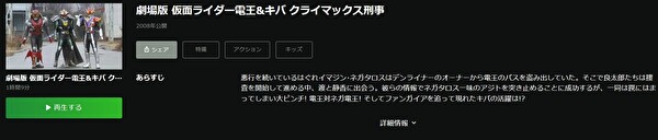 また、「劇場版 仮面ライダー電王&キバ クライマックス刑事」の映画の関連作品も見放題でフル視聴できます。