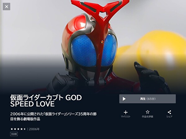 また、映画「劇場版 仮面ライダーカブト GOD SPEED LOVE」の関連作品の映画も無料トライアル中にフル視聴が可能です。