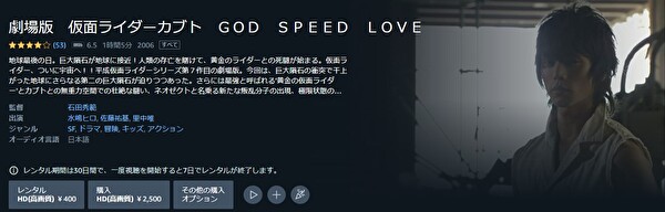 人気の動画配信サービスのAmazonプライムビデオで映画「劇場版 仮面ライダーカブト GOD SPEED LOVE」の映画がフルで視聴できるか調査しました。