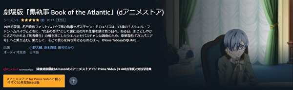 Amazonプライムビデオでも映画「劇場版 黒執事 Book of the Atlantic」はフルで視聴することができます。
