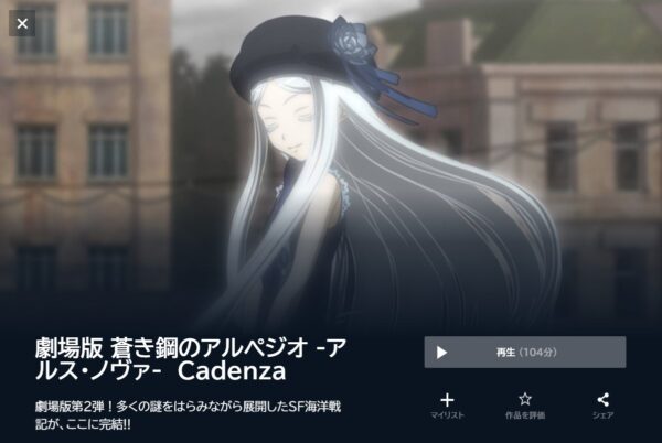 U-NEXTで映画「劇場版 蒼き鋼のアルペジオ -アルス・ノヴァ- Cadenza」の動画を無料トライアルでフル視聴