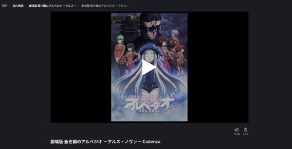 無料期間はありませんが、「劇場版 蒼き鋼のアルペジオ -アルス・ノヴァ- Cadenza」を視聴することができます。
