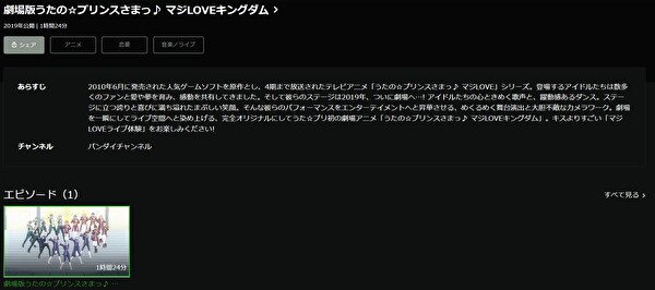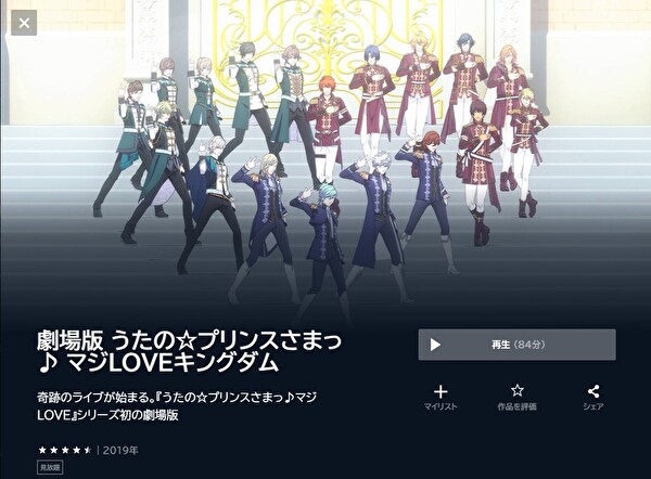 ただ、映画「劇場版 うたの☆プリンスさまっ♪ マジLOVEキングダム」の関連作品の映画も配信しているので、有料にはなりますが見放題で視聴は可能です。