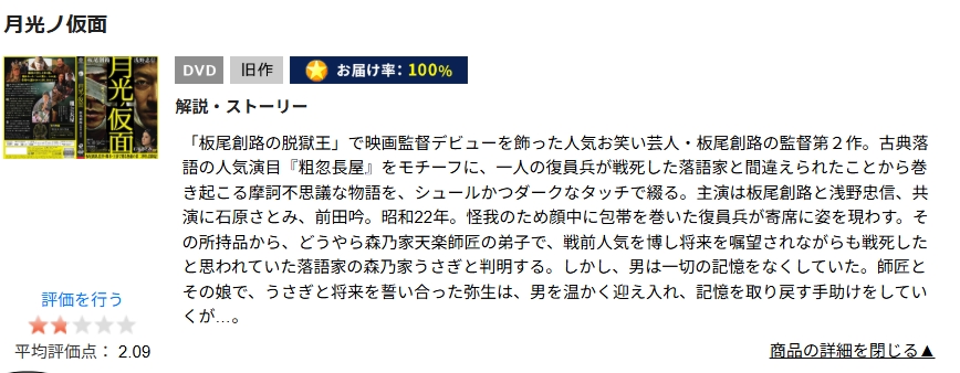 TSUTAYA DISCASで映画「月光ノ仮面」をDVDレンタルで無料視聴