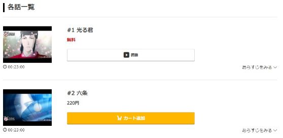 ただ、「源氏物語千年紀 Genji」のアニメはレンタル配信なので、料金がかかるので無料で視聴できません。