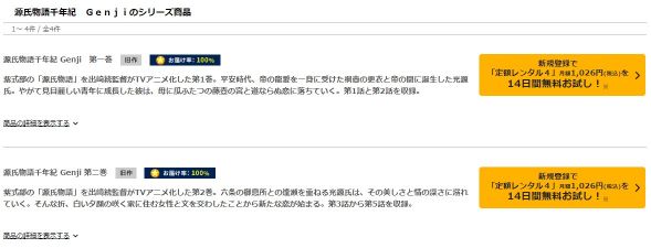 動画配信サービスとは少し違い、DVDレンタルサービスになりお試し期間で、「源氏物語千年紀 Genji」の動画を全話視聴することができます。