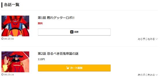 「ゲッターロボG」のアニメのレンタル料金は1話110円です。