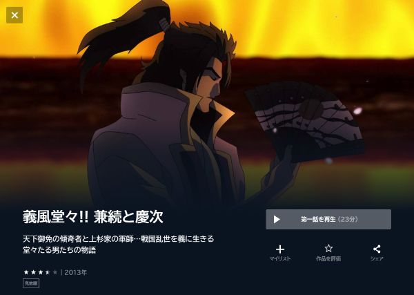 Netflixでは、アニメ「義風堂々!! 兼続と慶次」は配信されていませんでした。