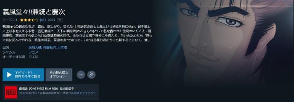 今後、Netflixでアニメ「義風堂々!! 兼続と慶次」の配信を待つより、U-NEXTでアニメ「義風堂々!! 兼続と慶次」は全話配信されているので、お試し期間のあるU-NEXTを利用することをおすすめします。