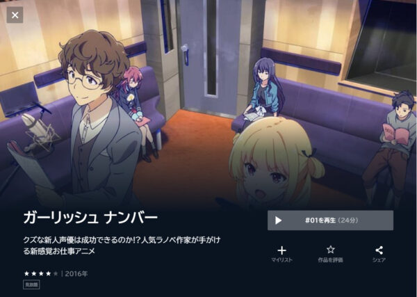 U-NEXTでアニメ「ガーリッシュナンバー」の動画を無料トライアルで全話視聴