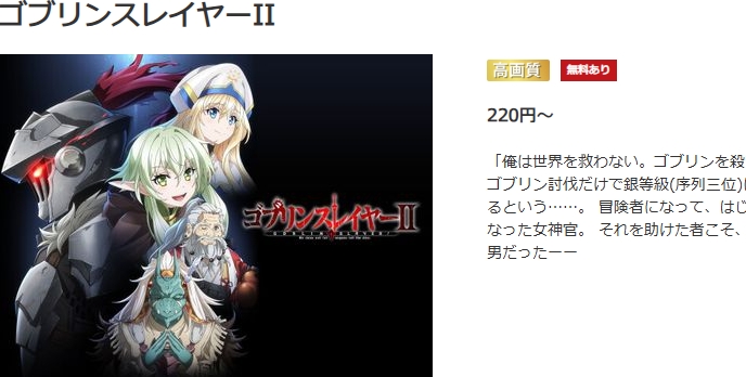 - アニメ「ゴブリンスレイヤーⅡ」や関連作品をフルで楽しめる。