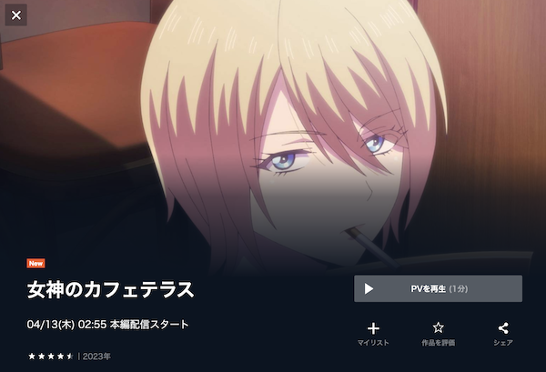 初回お試し期間が2週間があり、アニメ「女神のカフェテラス」は2023年4月7日から配信されており、全話見ることができます。