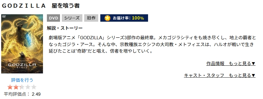 TSUTAYA DISCASで映画「GODZILLA 星を喰う者」をDVDレンタルで視聴