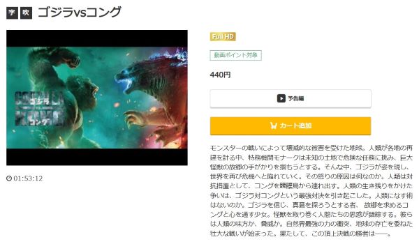 映画「ゴジラVSコング」は440円でレンタル配信してるので、フルで視聴できます。