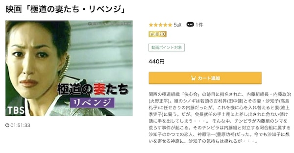 music.jpは、初回登録で1,600Ptが貰えるので「極道の妻たち・リベンジ」の映画を無料で見ることができます。