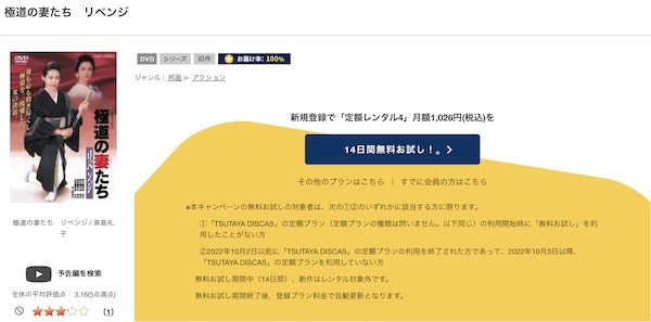 TSUTAYA DISCASで映画「極道の妻たち・リベンジ」をDVDレンタルで無料視聴