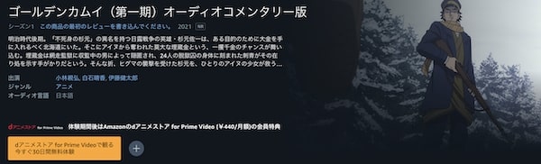 人気の動画配信サイトAmazonプライムでも、アニメ「ゴールデンカムイ1期 オーディオコメンタリー版」を視聴できるか調査しました。