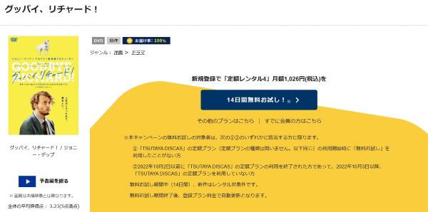 そして、映画「グッバイ、リチャード!」はツタヤディスカスで配信しているので、無料でDVDレンタルが可能です。