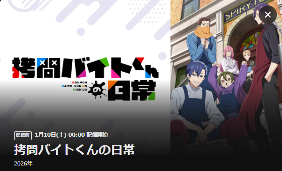 2026年1月4日(日)から放送スタートのアニメ「拷問バイトくんの日常」の配信を全話視聴できる動画配信サービスを紹介します。