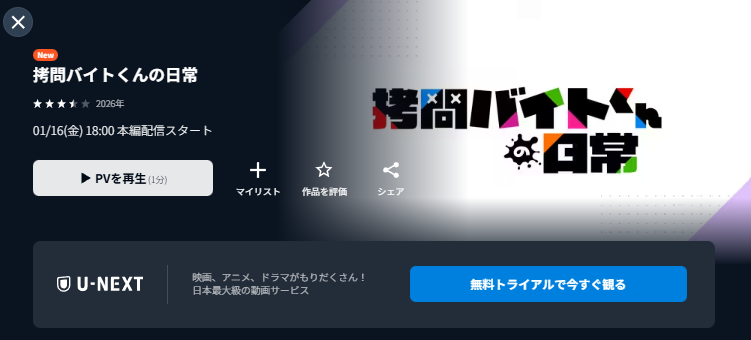 先に結論をお伝えすると、「拷問バイトくんの日常」は、動画配信サービス『U-NEXT』で配信される予定です。