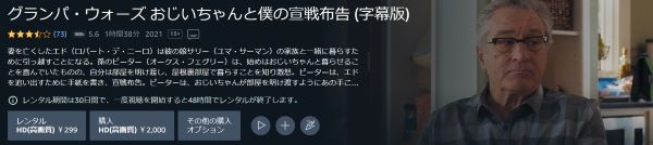 映画「グランパ・ウォーズ」をU-NEXTで視聴するのに199円のレンタル料金がかかります。