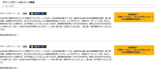 動画配信サービスとは少し違い、DVDレンタルサービスになりお試し期間で、「グリーングリーン」の動画を全話視聴することができます。