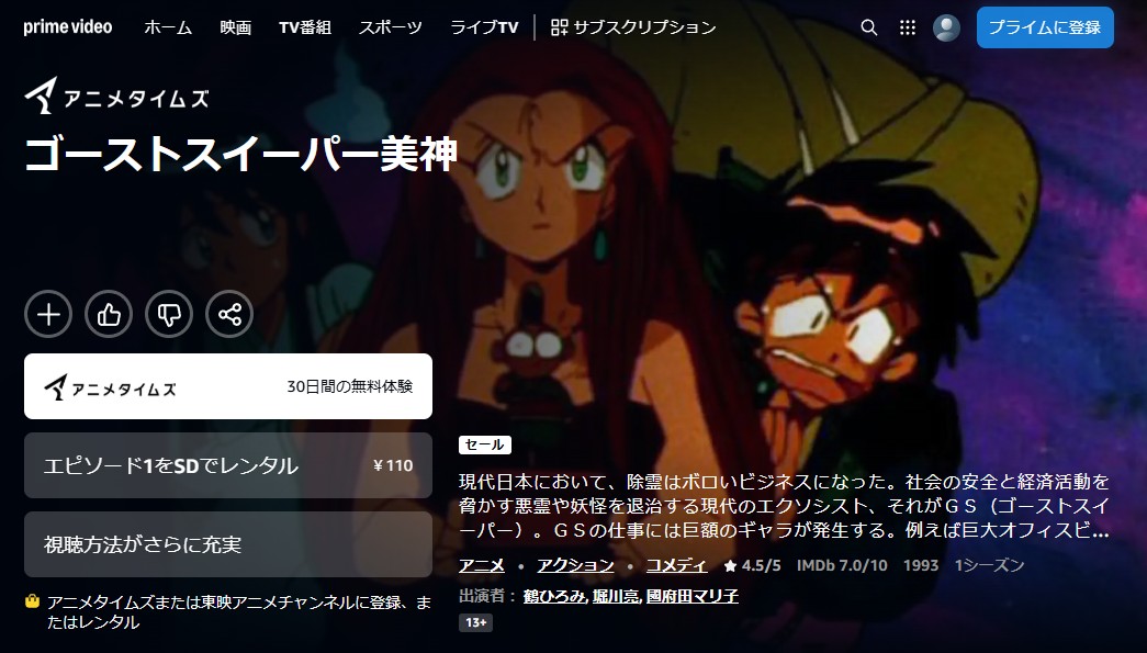 Amazonプライムで「GS美神」の配信を全話見放題