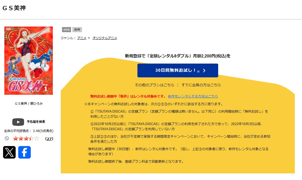 TSUTAYA DISCASで「GS美神」のDVDを全話視聴