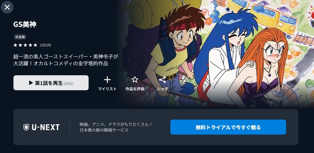 31日間の無料トライアルを利用すれば、追加料金なしで「GS美神」を全話視聴できます。