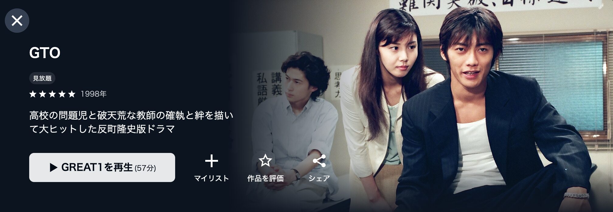 DMM TVで配信中のドラマ「GTO」シリーズを視聴